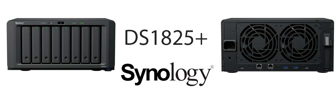 O DS1825+ é um NAS de 8 baias para discos SATA, hot swappable, processador AMD Ryzen 4-core, 8GB de memória DDR4, 2x portas USB e 2x conexões LAN. O server integra funções de armazenamento, backup, nuvem híbrida, gerenciamento de arquivos e vídeo vigilância.