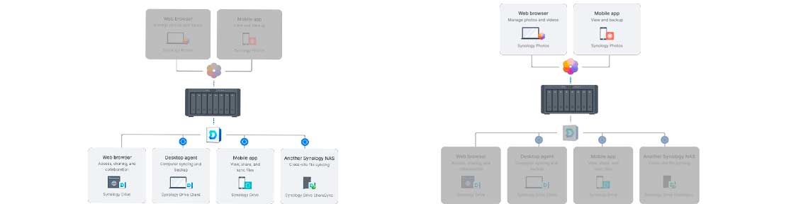 Mantenha os dados sincronizados automaticamente entre o Synology NAS e os principais provedores de nuvem, incluindo BackBlaze B2, Dropbox, Google Drive e Microsoft OneDrive. Suporte a vários protocolos, criptografia do lado do cliente e controles personalizáveis de sincronização e largura de banda permitem um gerenciamento de armazenamento eficiente em diversas plataformas.