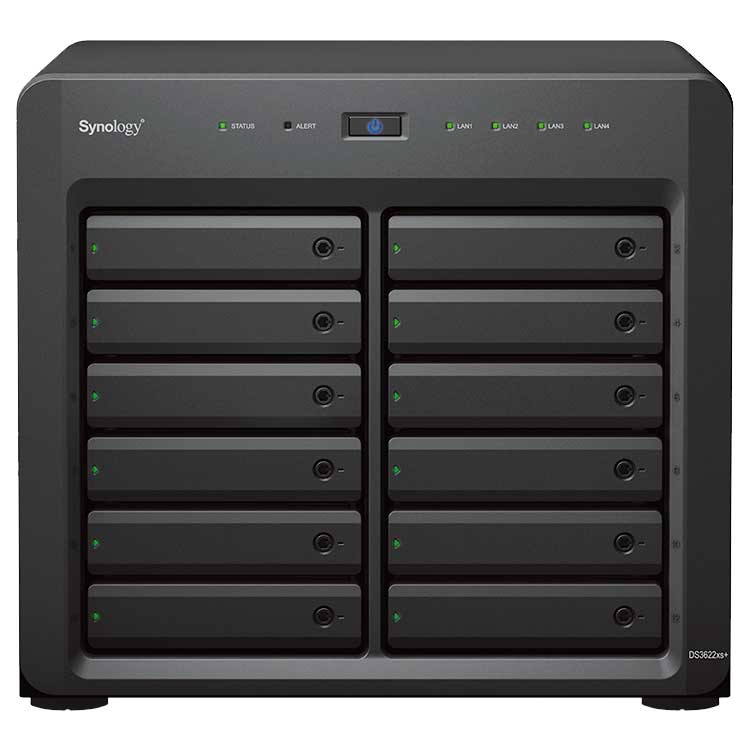 O DS3622xs+ Synology é um NAS com processador Intel Xeon D-1531 6-Core, 16GB de memória RAM (expansível 48GB), possui duas portas LAN gigabit, duas portas 10GbE, duas conexões USB 3.2 e possui um slot PCIe livre.