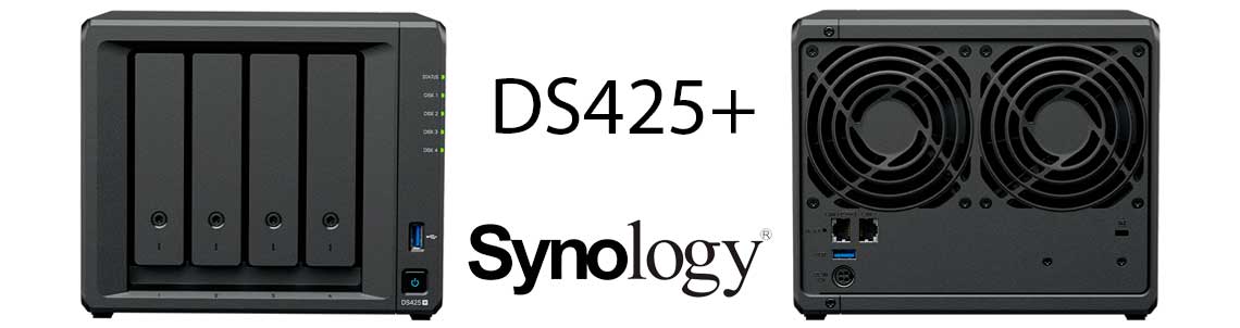 O DS425+ é um NAS de 4 baias para discos SATA, hot swappable, processador Intel Celeron 4-core, 2GB de memória DDR4, 2x portas USB e 2x conexões LAN. O server integra funções de armazenamento, backup, nuvem híbrida, gerenciamento de arquivos e vídeo vigilância.