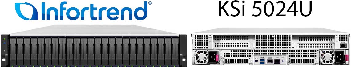 O KSi 5024U da Infortrend é um Enterprise Cloud Storage com 24 baias para discos SATA e memórias NVMe, processadores escaláveis Intel Xeon, 32 slots de memória DDR5 DIMM, padrão 128 GB, expansível até 2 TB DDR5 RDIMM, 3x portas de rede LAN e 2x entradas USB. Ele oferece recursos de nuvem, como escalabilidade e confiabilidade, permitindo que as empresas executem aplicativos nativos da nuvem e tradicionais.