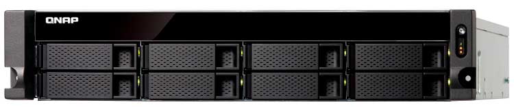 NAS 8 baias hot-swappable rackmount até 96TB, processador Quad Core, 4GB RAM, 2 portas LAN, 2 portas 10GbE e um slot PCIe para instalação de placas adicionais que ampliam as funcionalidades NAS. Ideal para backup, armazenamento e recuperação de dados.