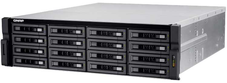 Solução de armazenamento em rede com 16 baias hot-swappable SATA, até 288TB de capacidade, processador Core i3, 4x portas LAN gigabit, 2x portas 10GbE SFP+, 4x portas USB 3.0 e fontes de alimentação redundantes. Storage NAS de baixo custo para virtualização, compartilhamento e backup de dados.
