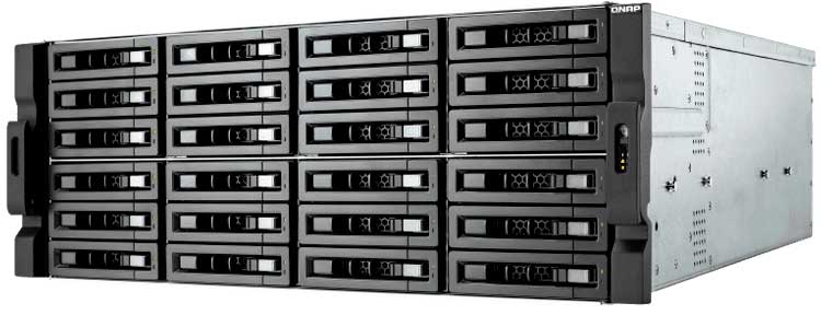 Storage NAS 24 baias SATA, hot-swappable, até 384TB de capacidade bruta, fontes de alimentação redundantes, processador Intel 6-Core, 4x portas LAN, 2x 10GbE e 5x slots PCIe livres p/ instalação de placas adicionais. NAS de alta capacidade e desempenho p/ armazenamento, backup e virtualização.