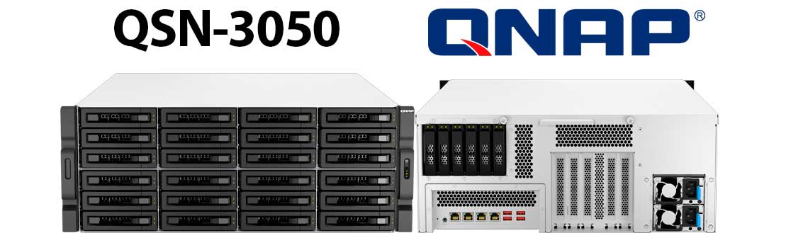 O QSN-3050 é um Scale Out NAS de 30 baias, sendo 24 para discos SATA e 6 para SSD, hot swappable, processador Intel Xeon E 8-core, 128GB de memória DDR4 RAM, 3x slots PCIe, 2x portas Ethernet Gigabit de 2,5G, 2x Ethernet de 10 Gigabits 10GBASET e 4x portas USB 3.2. O servidor foi projetado especificamente para dados em escala de petabytes, retenção de longo prazo e requisitos de alta disponibilidade.
