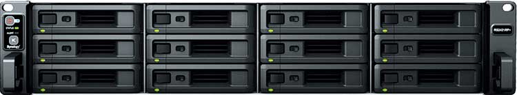 O Rackstation RS2421+ da Synology oferece 12 baias hot swappable para discos SATA de 2,5 e 3,5 polegadas. Equipado com o processador AMD Ryzen, 4 GB de memória DDR4 ECC (expansível até 32GB), 4x portas RJ-45 1GbE LAN e 2x portas USB 3.2 Gen 1.
