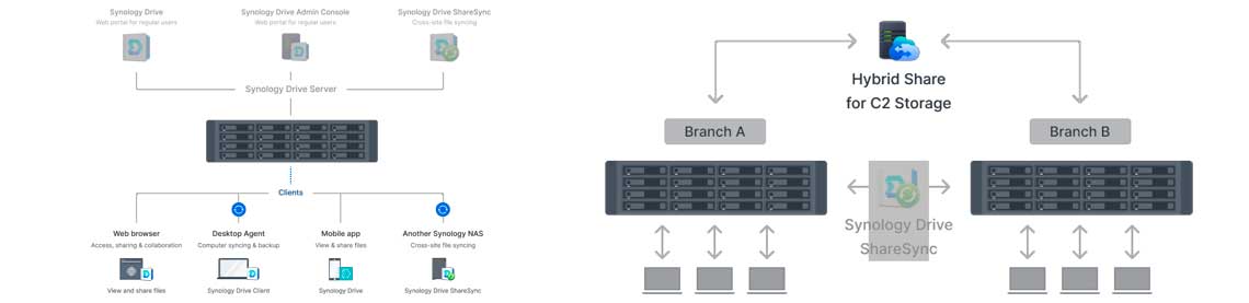 Acesse dados pessoais e compartilhados de aplicativos móveis, clientes de desktop, navegadores da web ou outro sistema Synology. Quaisquer alterações feitas serão sincronizadas automaticamente com outros dispositivos assim que eles forem conectados.