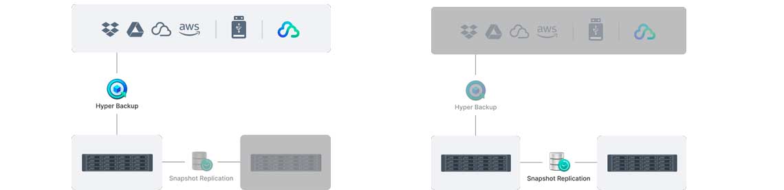 Faça backup de sistemas inteiros ou de todos os dados, aplicativos e configurações em uma ampla variedade de destinos de armazenamento, incluindo Synology C2 Storage9Em caso de perda de dados, restaure rapidamente sistemas completos por meio da recuperação bare-metal ou recupere arquivos individuais conforme necessário.