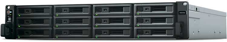 O Synology RS3618xs é uma solução NAS de 12 baias hot-swappable com processador quad-core 2,4 GHz, criptografia AES-NI, 8GB RAM (até 64GB), 240TB de capacidade de armazenamento, 4 portas LAN gigabit, 2 portas USB 3.0 e 2 slots PCIe para instalar portas de rede 10GbE ou cache SSD M.2.