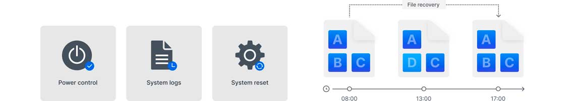 Resiliência de dados: Configure snapshots e replicação para restauração em nível de arquivo e pasta para garantir a continuidade dos negócios e aproveitar o Btrfs para autocorreção de arquivos.