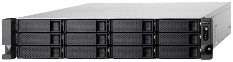 Qnap TS-1253BU - Storage NAS rackmount com 12 baias SATA hot swappable (HDD ou SSD), 4 portas LAN gigabit, 1 saída HDMI, 4 USB 3.0 e serviços iSCSI. Servidor NAS para implementação de ambientes virtuais via aplicativos Virtualization e Container Station.