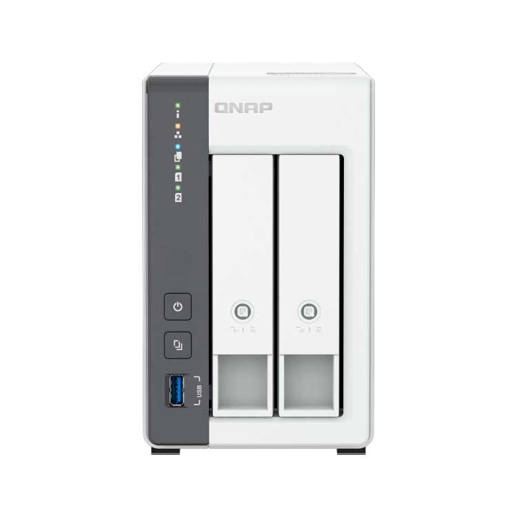 O TS-216G é um servidor NAS da Qnap de 2 baias para discos SATA, hot swappable, processador ARM Cortex-A55 4-core, 4GB de memória RAM, 2x portas LAN e 3x portas USB. Servidor de armazenamento ideal para pequenos escritórios e ambientes domésticos. Possui recursos de backup, NPU integrado para aceleração de IA, proteção contra ransomware, sincronização de dados e sistemas de vídeo vigilância.