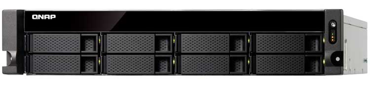 Qnap TS-853BU-RP - Storage NAS para uso enterprise com 8 baias SATA, 96TB nativo e expansível até 240TB, 4 portas gigabit, uma saída HDMI e fonte de alimentação redundante. Suporta 10GbE e M.2 SSD, um slot PCIe livre, serviços iSCSI e agregação de links.