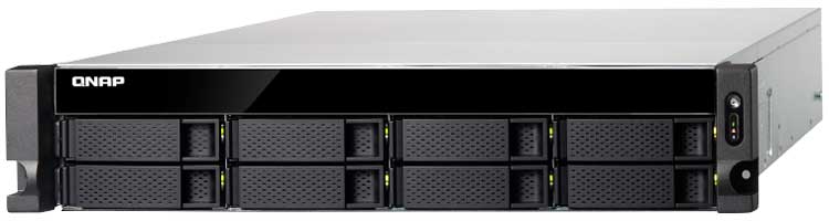 TS-873U Qnap - Storage 8 baias para hard disks SATA, até 80TB de capacidade, 4x portas LAN gigabit e 2x SFP+ 10GbE. Solução de armazenamento integrada para armazenamento em rede com recursos RAID, suporte à virtualização, backup, serviços de alvo iSCSI, tiering, integração AD e LDAP.