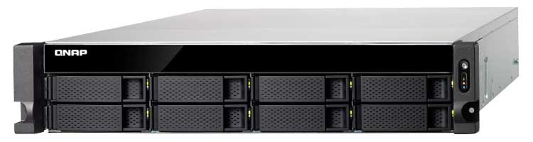Qnap TS-873U-RP - Servidor de rede NAS 8 baias até 96TB, 4 portas LAN gigabit, 2 SFP+ 10GbE, fonte de alimentação redundante, 2 conexões USB 3.0 e 2 slots SSD SATA M.2 de 6 Gb/s. Preparado p/ virtualização, edição e compartilhamento de mídia em tempo real