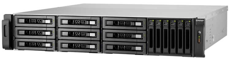TVS-EC1580MU-SAS-RP Qnap - Servidor NAS para discos SAS com 4x portas LAN gigabit, 1x conector mini SAS e 1 saída HDMI. Storage SAS para pós-produção, virtualização, armazenamento e backup de dados, com aceleração por cache SSD e recursos de tiering.